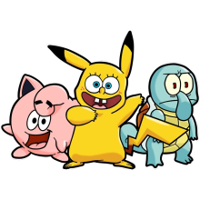 • Body bébé humoristique de la marque Okiwoki (marque française spécialisée dans la Parodie) représentant une parodie stylée et pleine d'humour de Bob, Carlo, Patrick cosplayés en Pikachu, Carapuce et Rondoudou de Pokémon